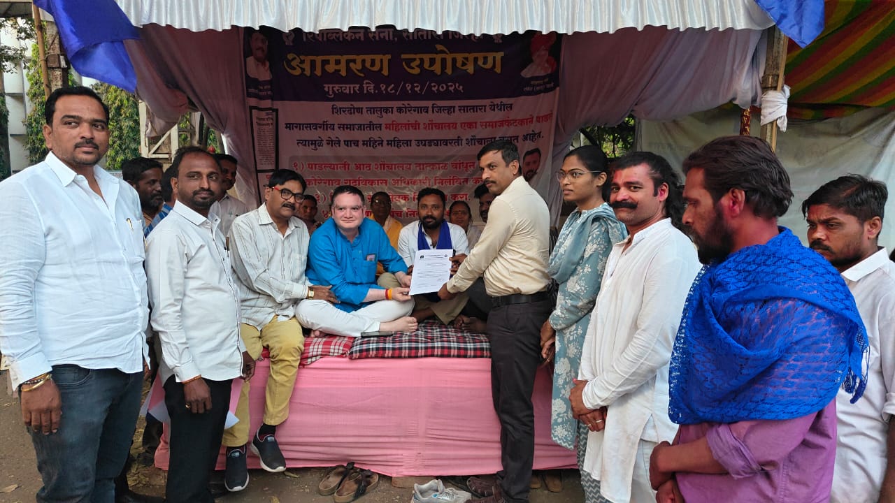 धुळदेव येथे उपसरपंच विलास कोळेकर यांचा सत्कार करताना (छायाचित्र आकाश दडस)